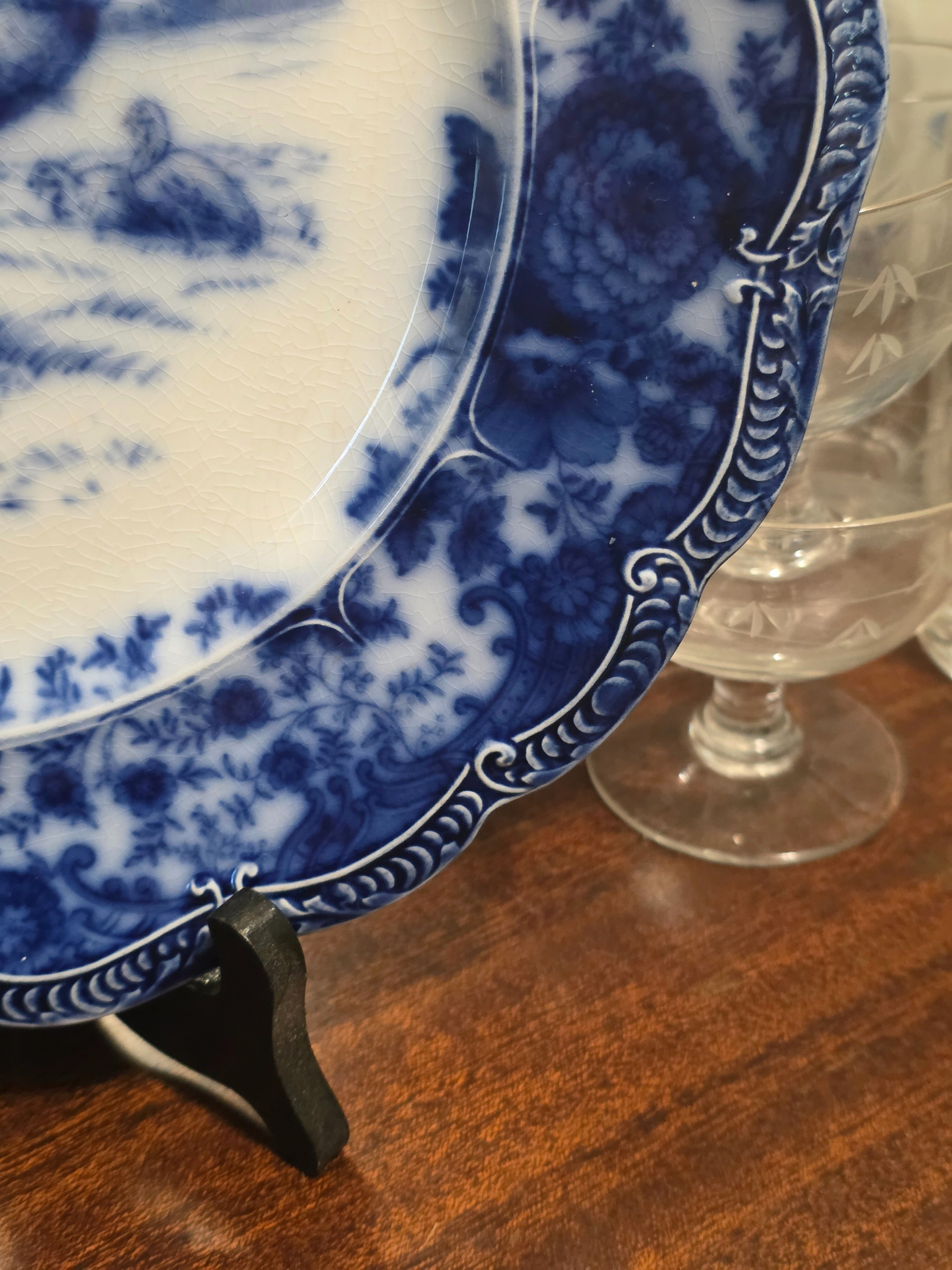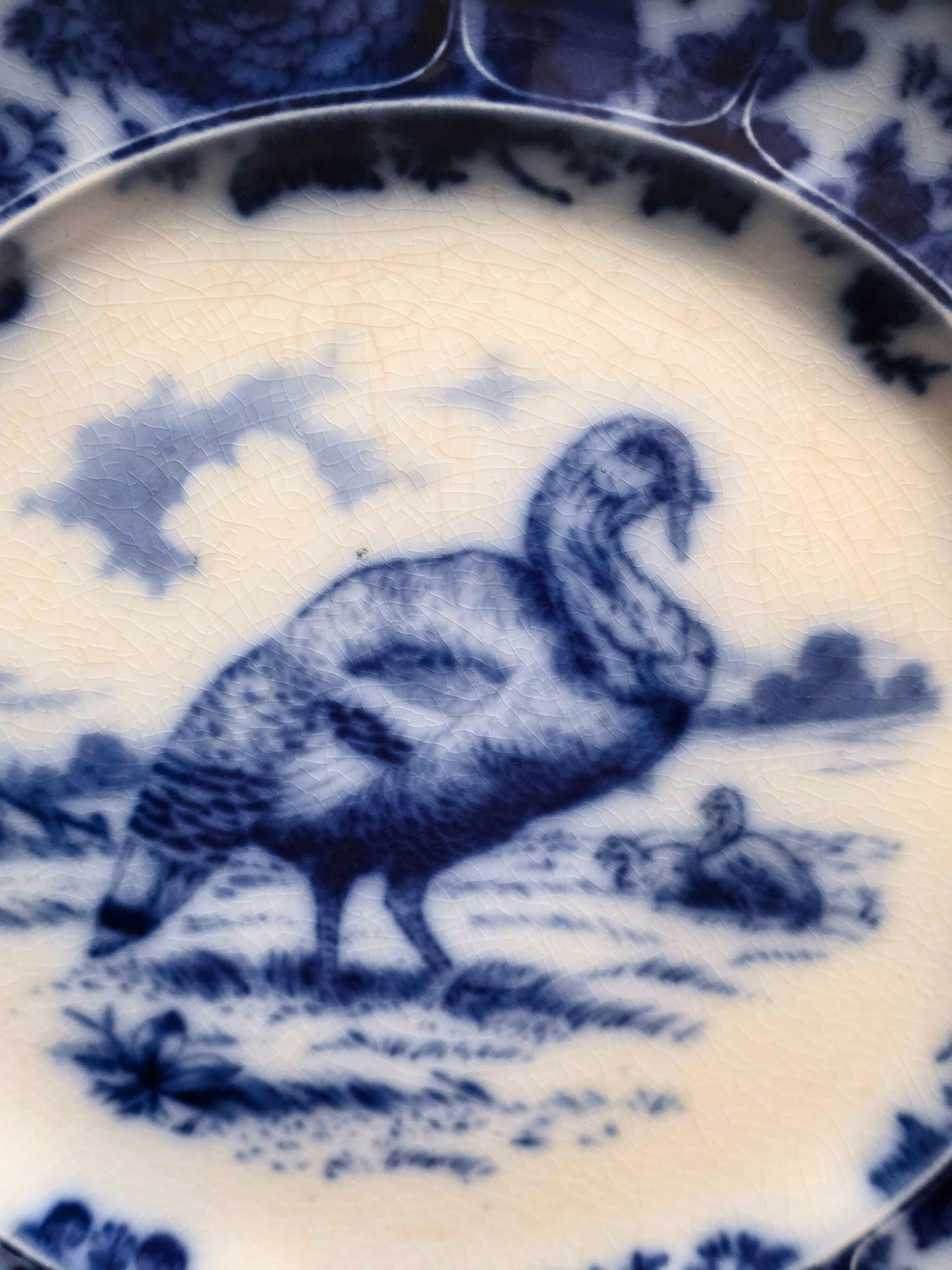 Antique Ridgeway Flow Blue Dinner Turkey Plate