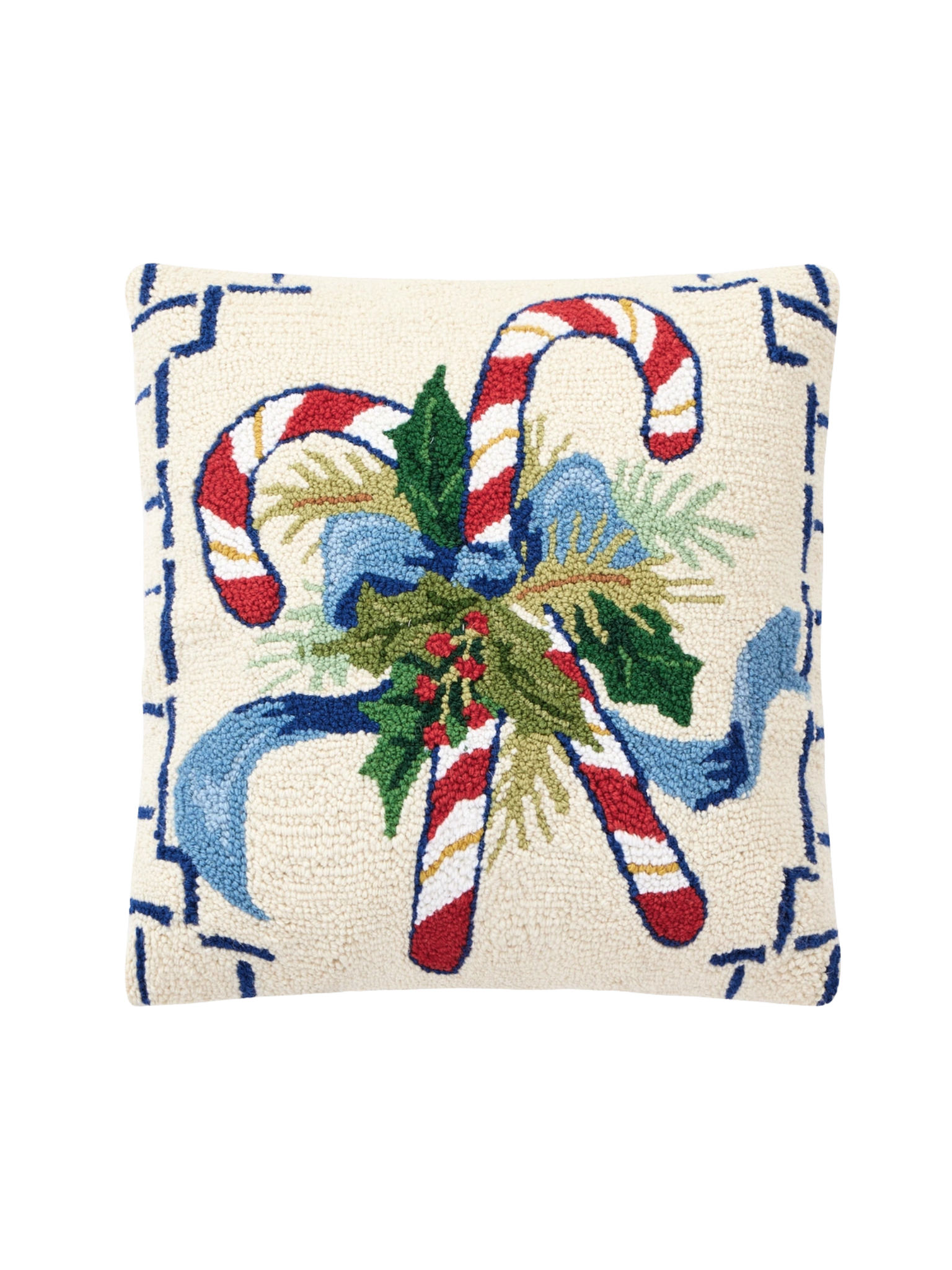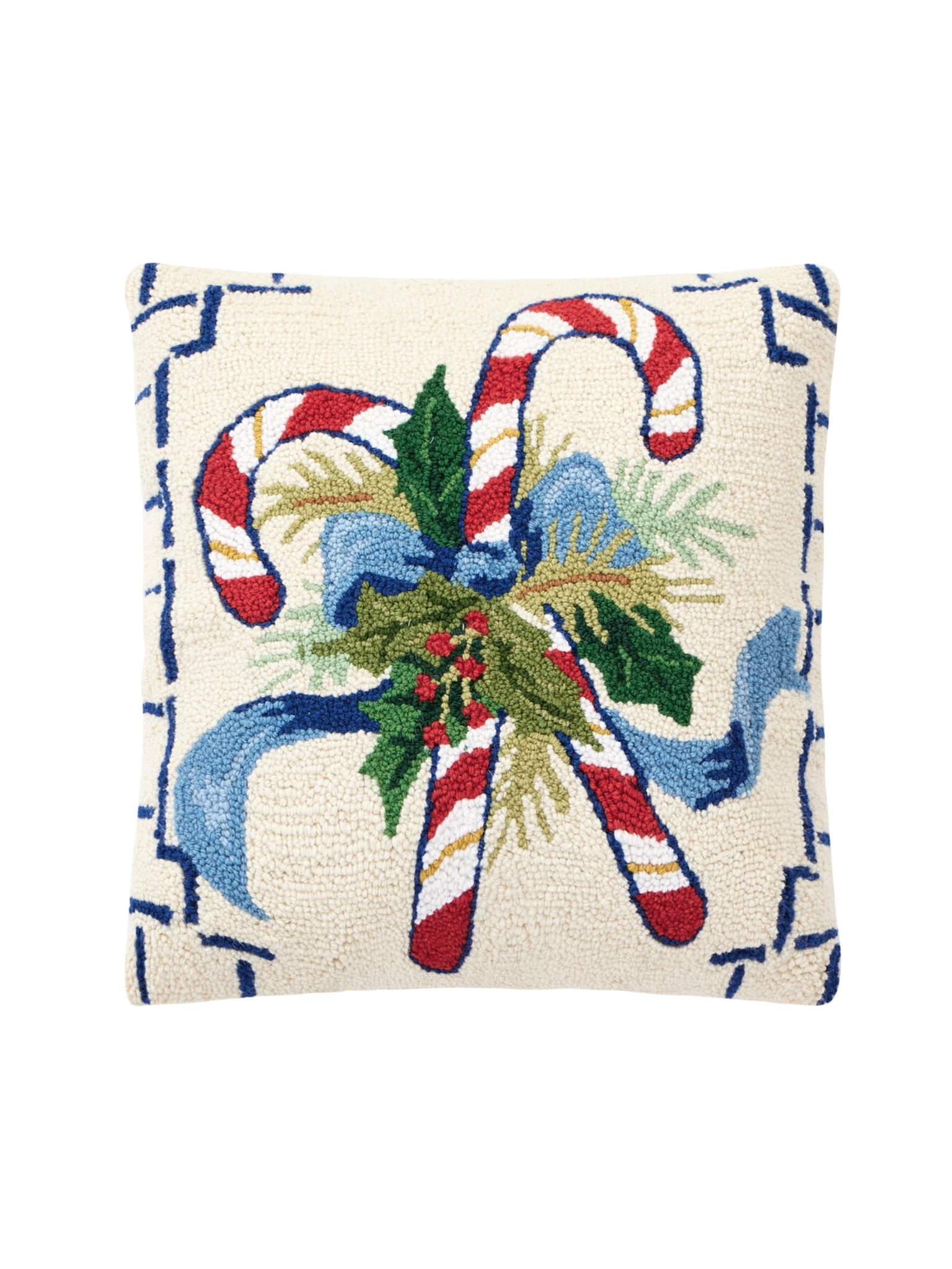 Bring festive spirit into your home with this charming 18x18" hooked pillow, beautifully crafted with a candy cane design inspired by Chinoiserie artistry. Constructed from quality 100% wool and backed with plush polyester velvet, it's built to last through many holiday seasons. The pillow arrives ready to use with a comfortable polyester insert and a convenient zipper closure for effortless maintenance. Whether you're updating your seasonal décor or gifting to a loved one who appreciates thoughtful home accents, this piece adds warmth and character to any space.