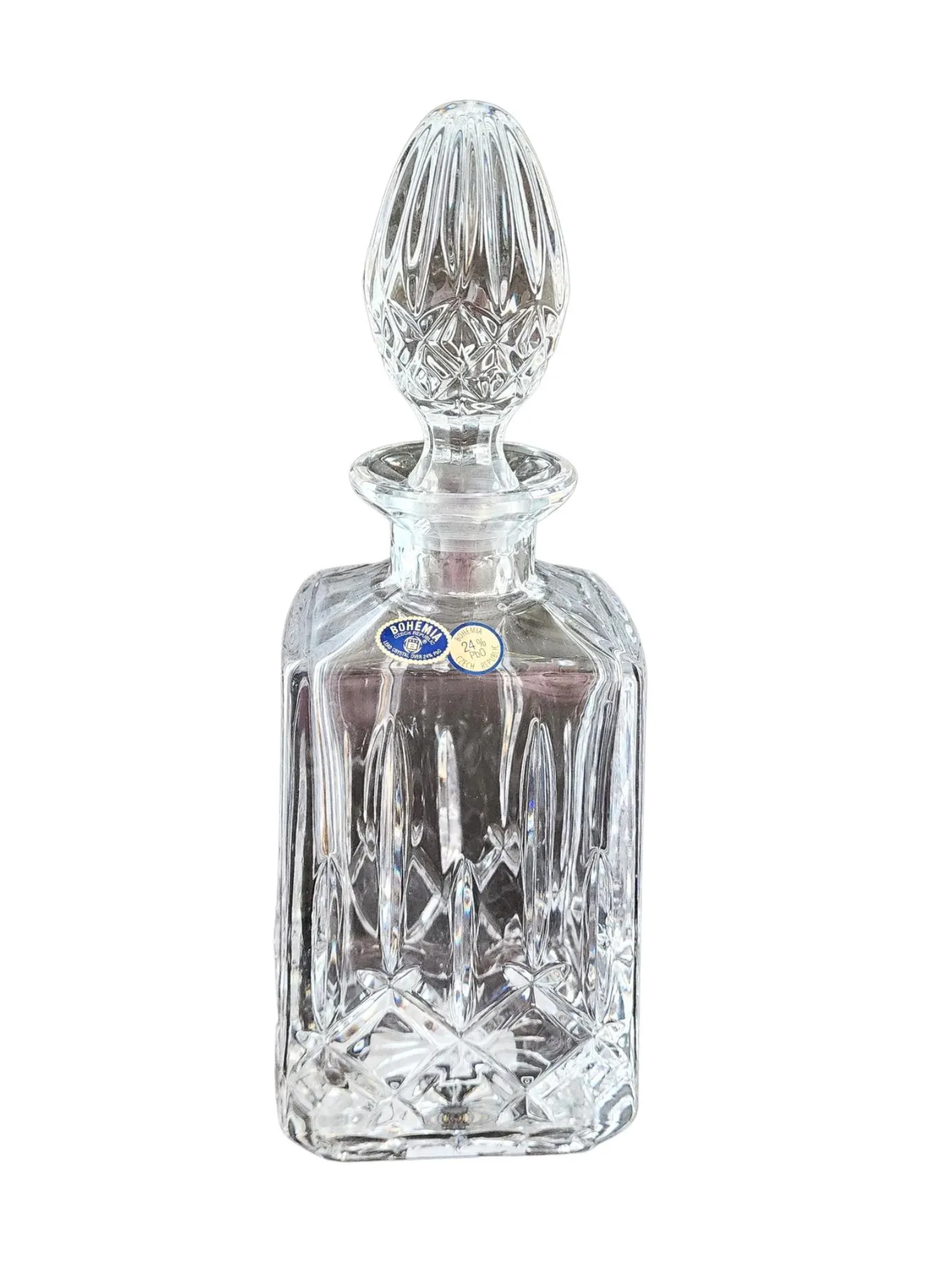 Leaded Cut Crystal Glass Decanter. Gorgeous barware for your upcoming holiday. Bohemia 24% PbO heavy lead crystal glass liquor whiskey bourbon decanter. Makes a great gift.