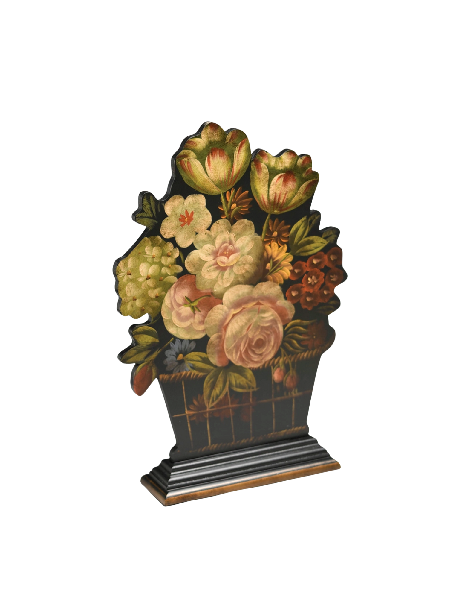 English Style floral Painted Wood Firescreen, Flower Basket Dummy Board